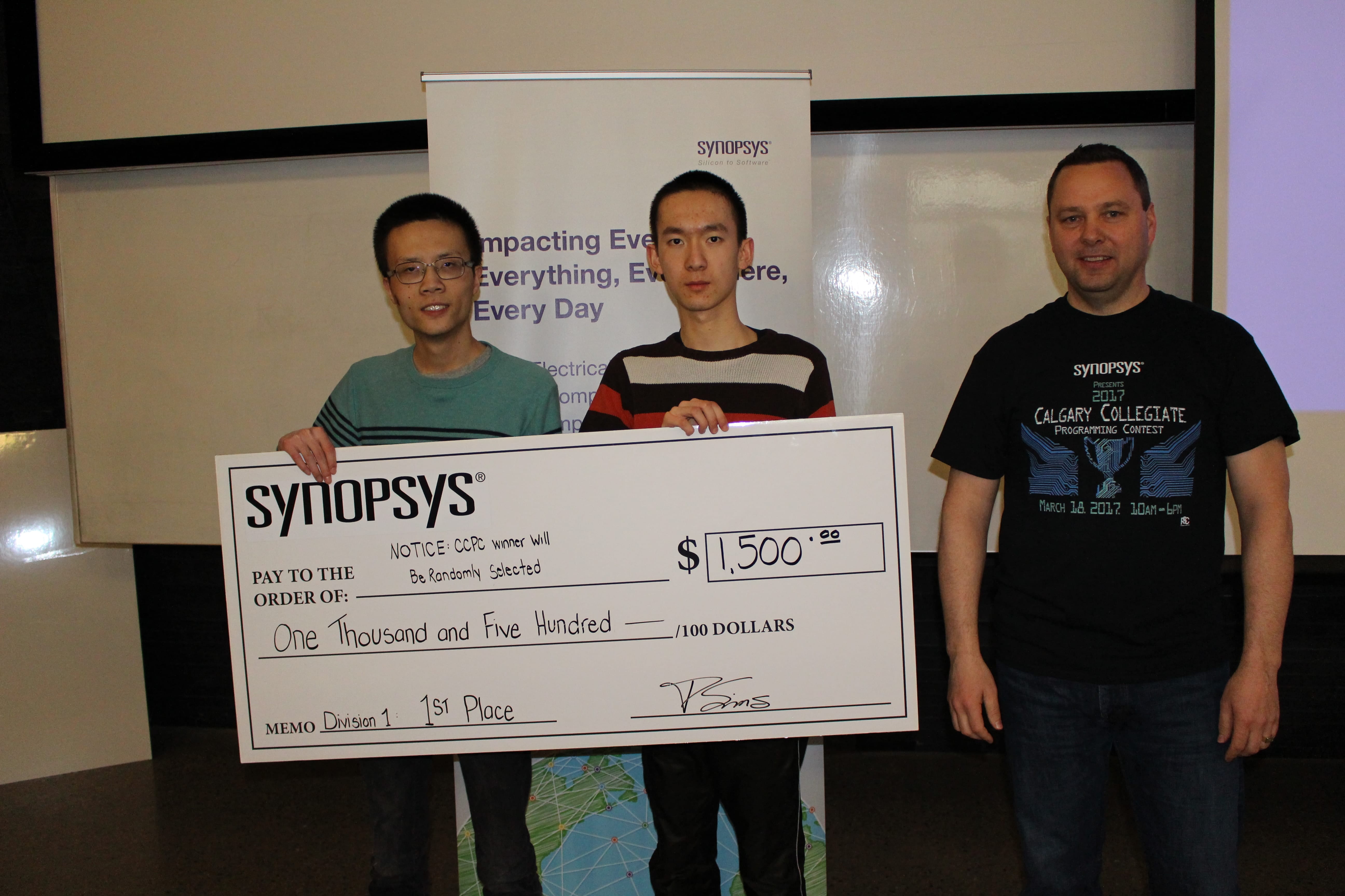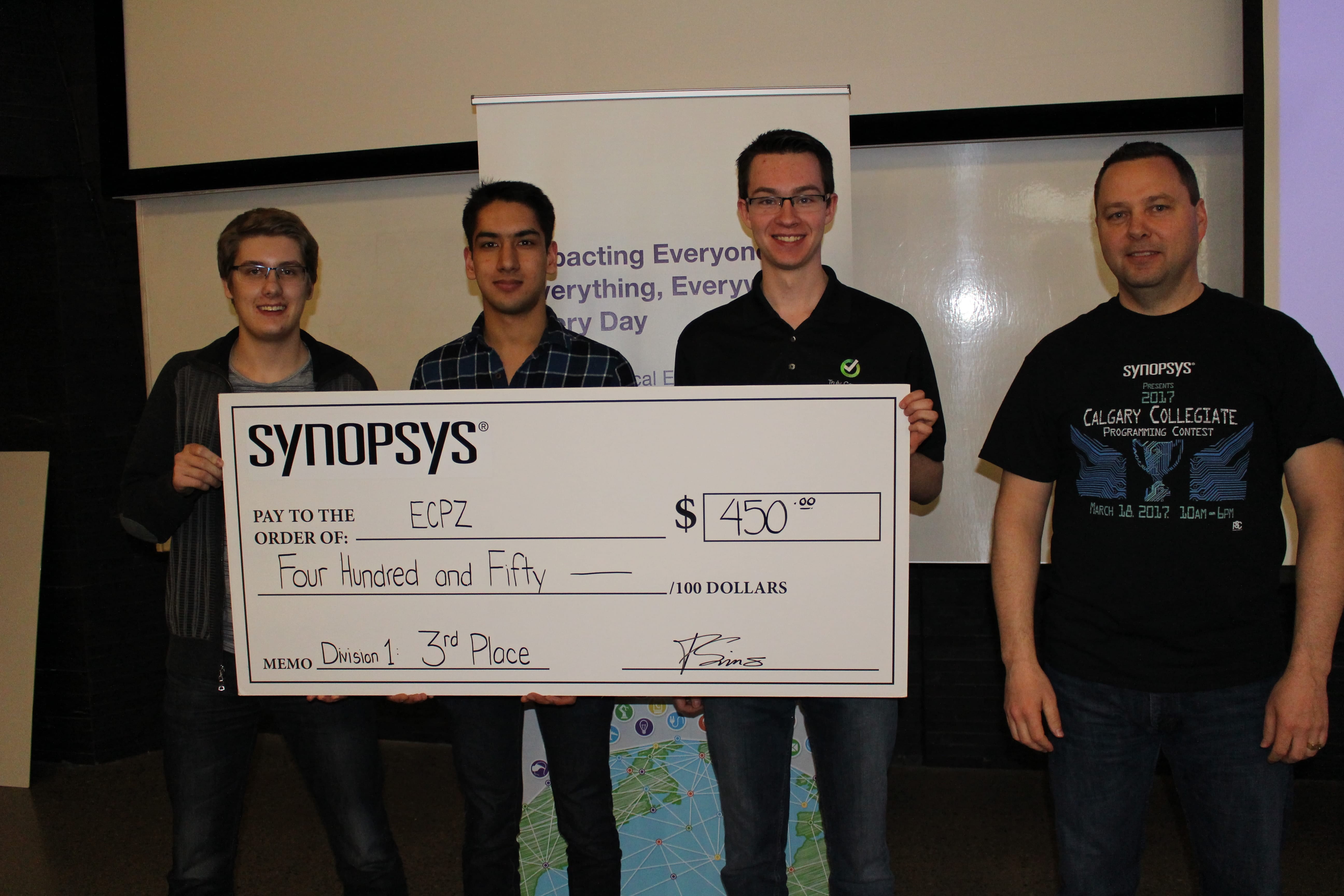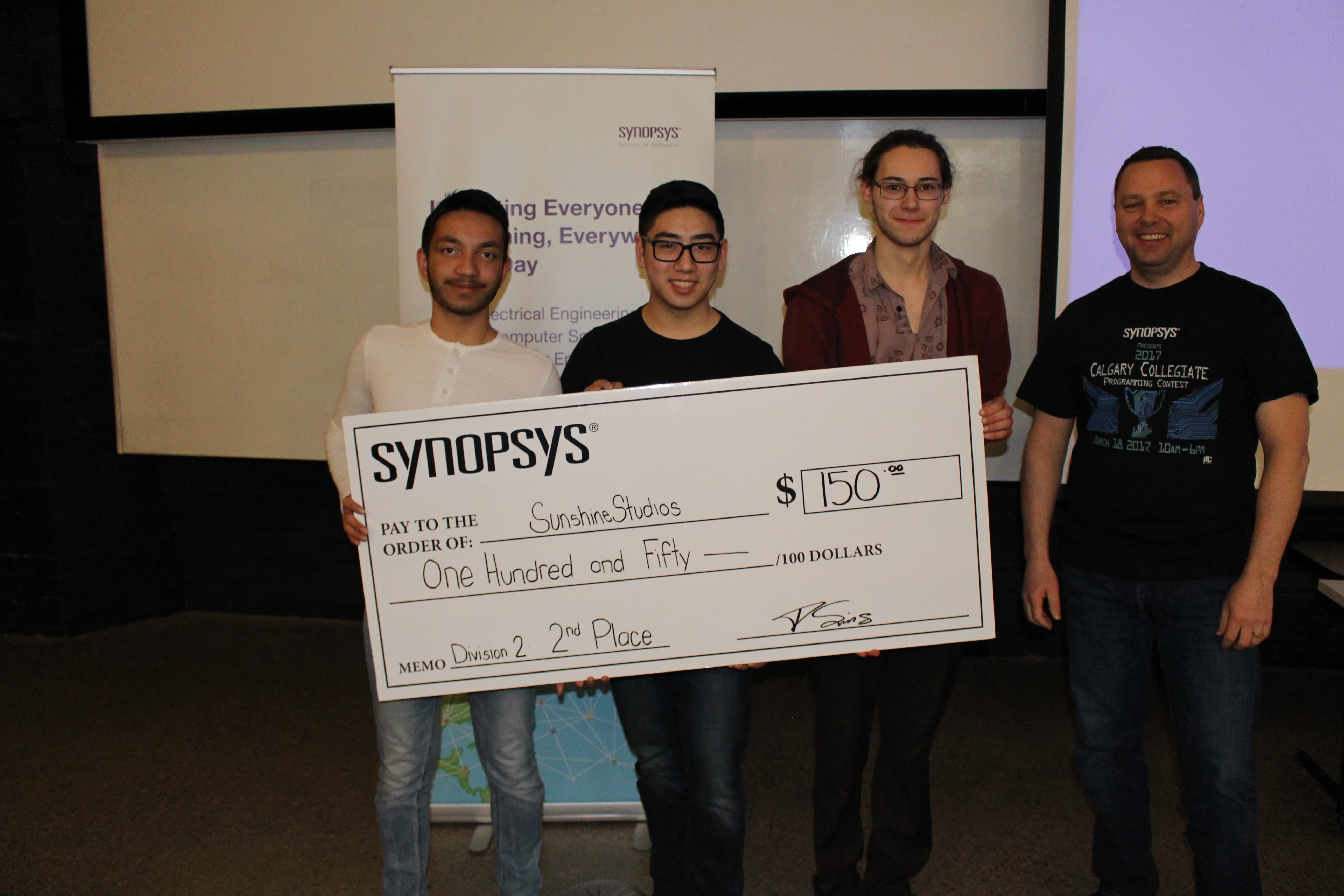 The Calgary Collegiate Programming Contest (CCPC) provides post-secondary students in Calgary with the opportunity to excel in an ACM ICPC-style programming competition. Students test their aptitude and knowledge against a set of programming puzzles requiring problem-solving, programming, math, and teamwork skills. Teams are ranked according to the number of problems solved within four hours. The CCPC is sponsored by Synopsys and provides a platform for the next generation of computing professionals to pursue excellence. Kattis has graciously sponsored the judging platform.